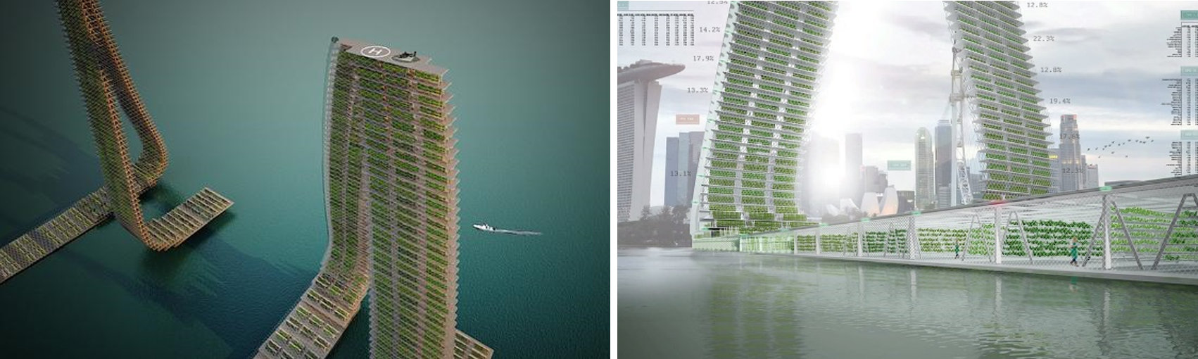 In der Gegenwart gibt es Projekte zur Planung von Hochhäusern für Pflanzen – eine Idee von spanischen Architekten zu vertikaler Landwirtschaft. In Singapur werden 90% der Nahrungsmittel importiert, da wenig Platz und Bodenverarmung ein immer größer werdendes Problem wird. Das spanische Architekturbüro Forward Thinking Architecture hat sich dazu ein schwimmendes Hochhaus ausgedacht. Dieser ist geschwungen geformt, damit alle Etagen maximale Sonnenstrahlen abbekommen.